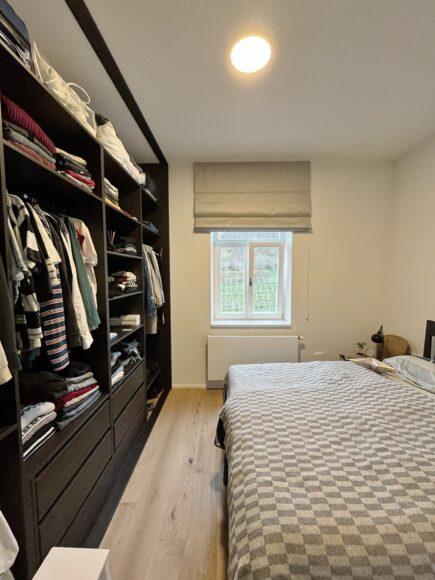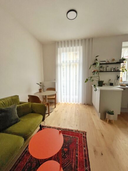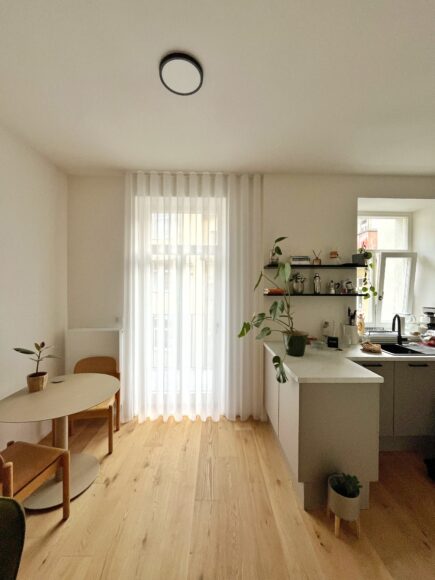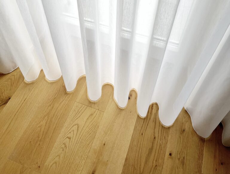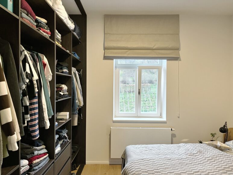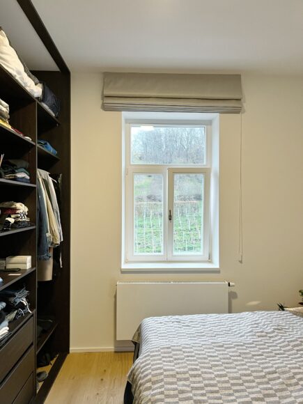 I malé prostory si zaslouží kvalitní textilie na míru. Šili jsme záclonu a římskou roletu do tohoto útulného bytu na pražském Žižkově. Dodávali jsme také kolejnici a mechanizmus římské rolety od kvalitního dodavatele Forest.